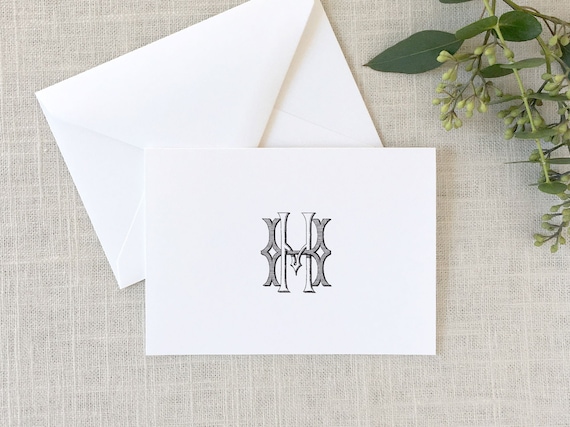 Hh Interlocking Monogram Folded Note Cards Wedding Etsy